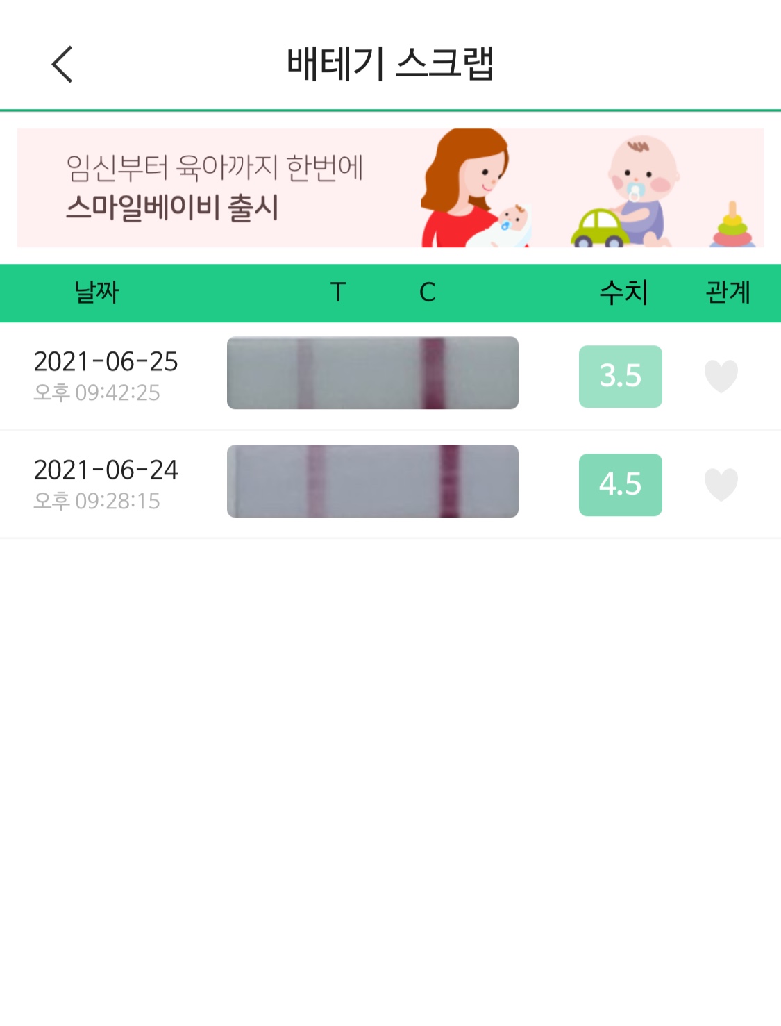 그날그날 테스트기를 붙여서 날짜를 비교해볼 수 있어요.