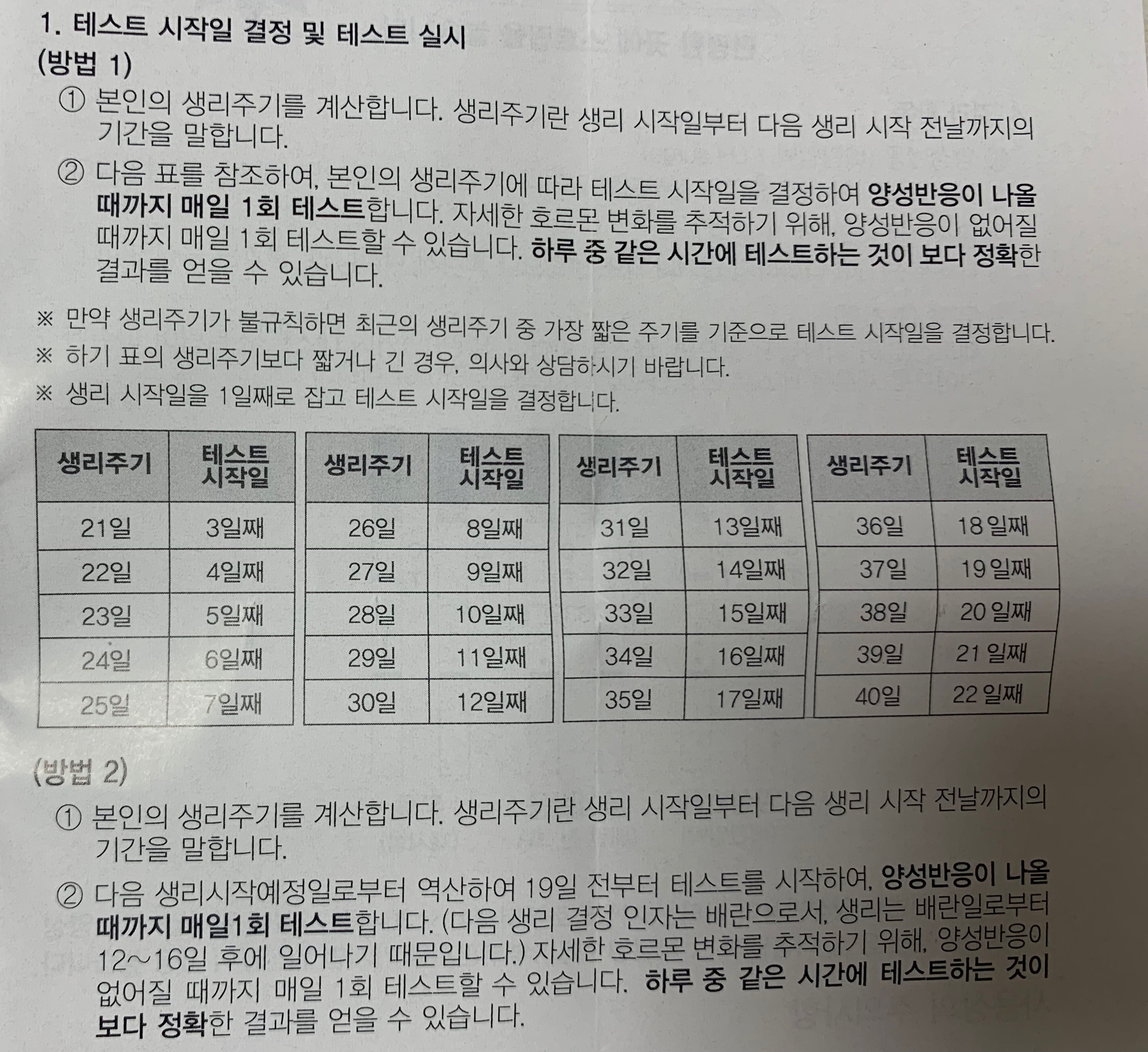배란테스트기 시작하는 날짜는 위 표에 맞춰 시작하면 되는데요!